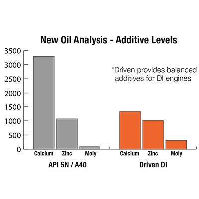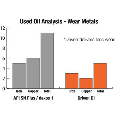 From that research and engine testing, Driven developed a new line of direct injection motor oil that provides a right-now solution for direct injection engines. Driven’s DI synthetic motor oils are ahead of the curve when it comes to the newest API SN Plus & SP Engine Oil specs. Each Driven DI formula features lower levels of Calcium and boosted levels of Molybdenum to combat LSPI, reduce abnormal combustion, and protect against soot related wear. The DI line of fuel injection oil also features a lower volatility base oil, reducing crankcase vapors and carbon buildup on intake valves. The results below show how Driven’s DI formula delivers a different additive package compared to current European specs and the previous API spec, and Driven’s DI formula reduces wear compared to the new API SN+ & SP oil spec in a high-performance DI engine.