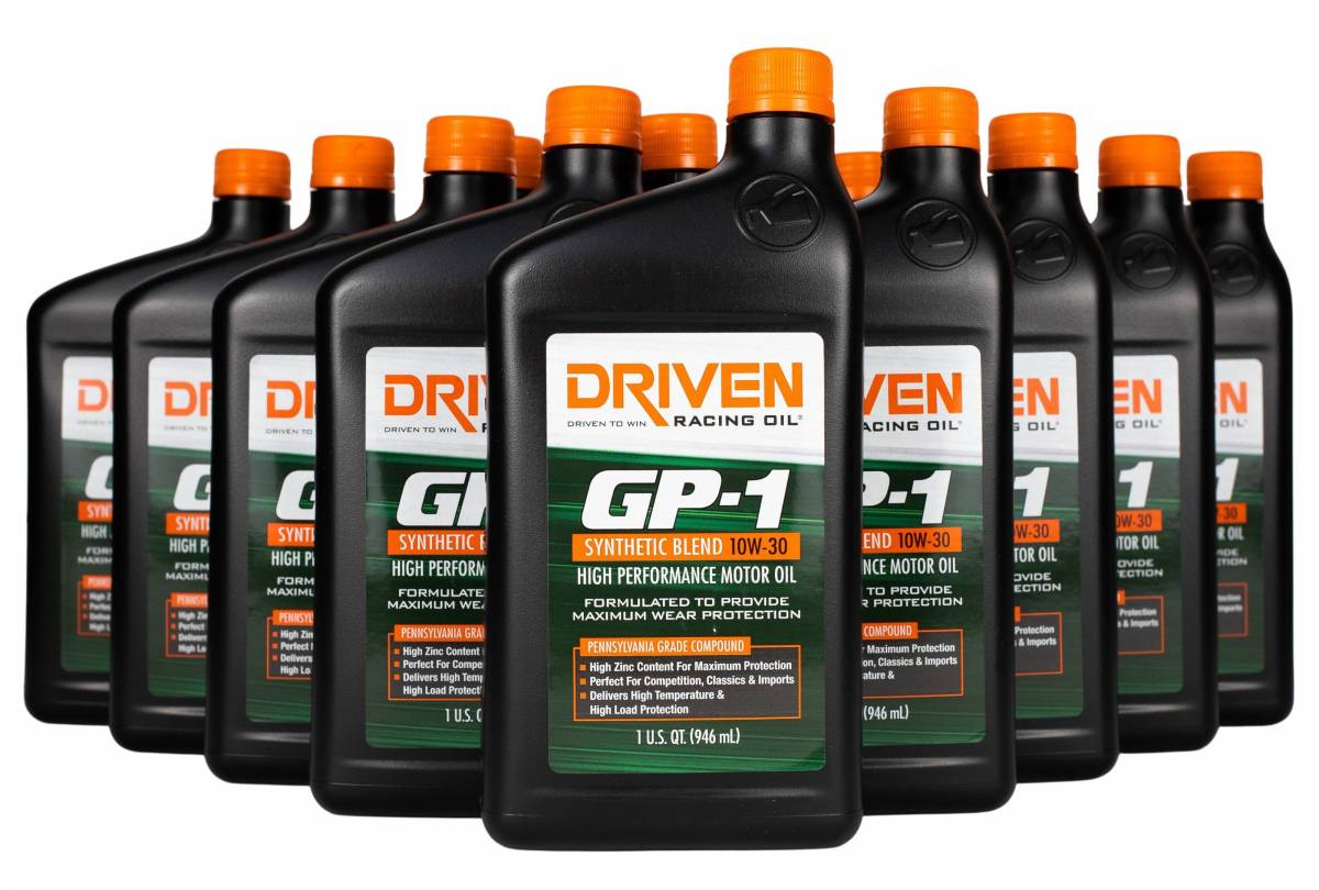 Driven Racing Oil GP-1 brings the strength of Made in the USA Pennsylvania-grade base oil to high-performance and racing engines, delivering reliability and enhanced wear protection. Choose GP-1 10W-30 Synthetic Blend for superior film strength, engine cleanliness, and optimal performance across all driving conditions.