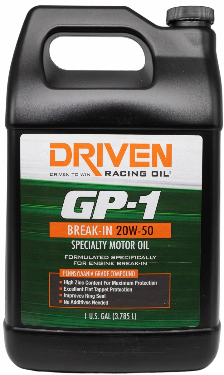 Driven GP-1 20W50 Break In oil should only be used for engine break in. This engine oil will NOT MEET any current API or OEM Engine Oil Specifications as it is formulated specifically for engine break in.