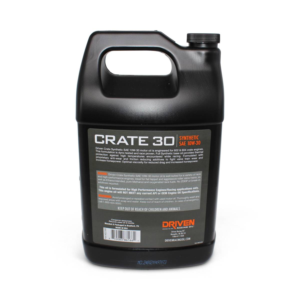 Driven Racing Oil's Crate Synthetic 10W-30 motor oil is engineered specifically for 602 & 604 crate engines. Dyno tested and race proven for optimal viscosity, reducing drag for increased horsepower. Full synthetic base oil provides thermal protection against high temperatures encountered while racing. Formulated with proprietary anti-wear and friction reducing additives.